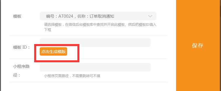 3、点击生成模板-》系统会自动生成模板id